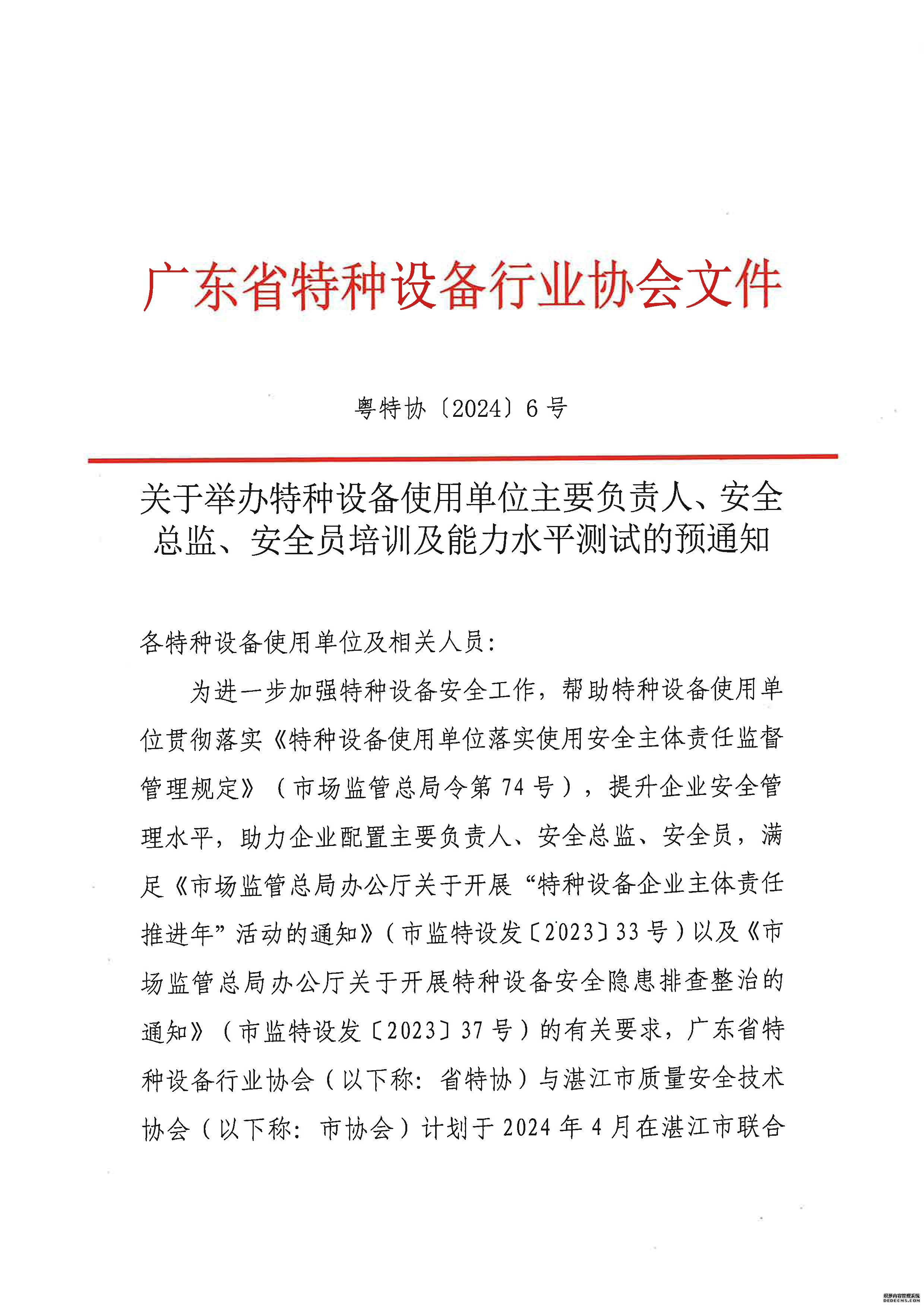 關(guān)于舉辦特種設(shè)備使用單位主要負(fù)責(zé)人、安全總監(jiān)、安全員培訓(xùn)及能