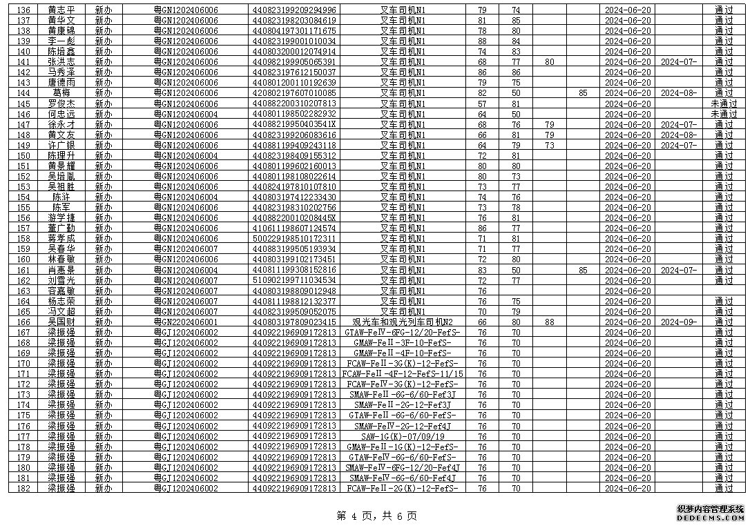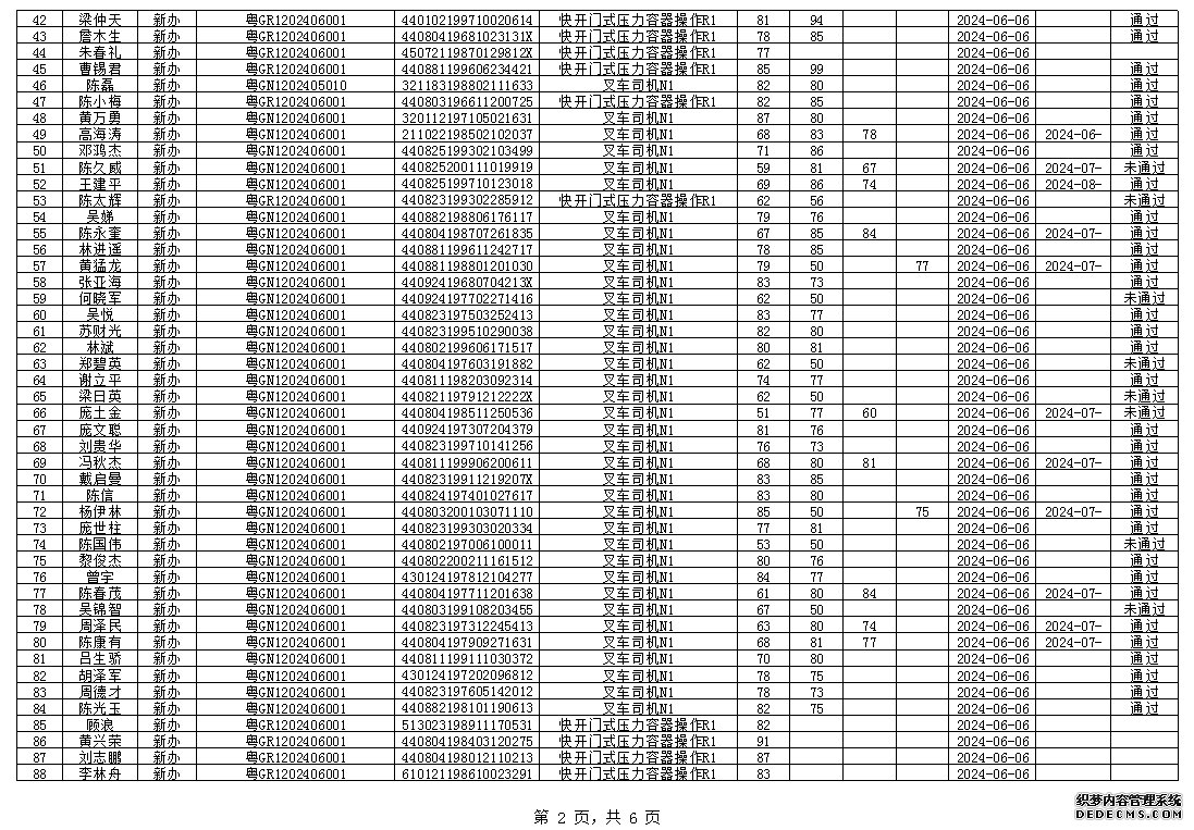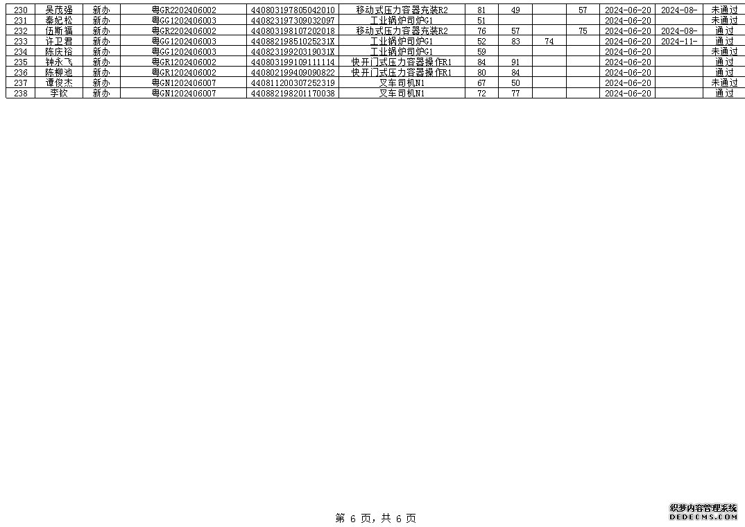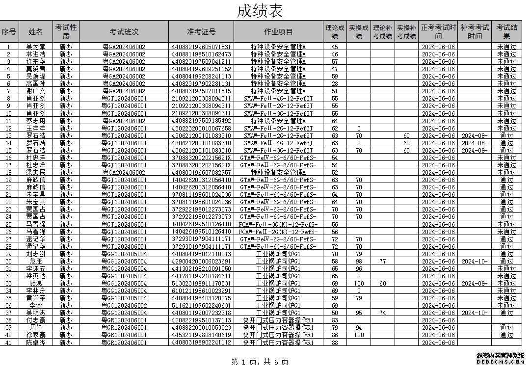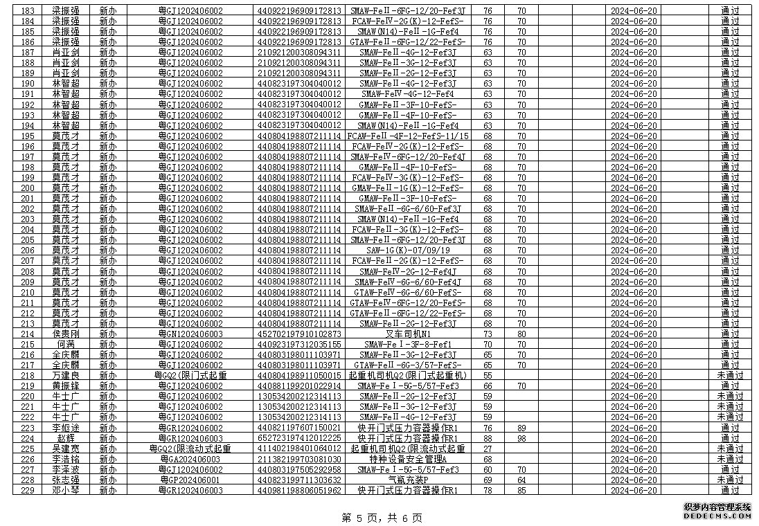 2024年6月特種設(shè)備作業(yè)人員考試成績(jī)