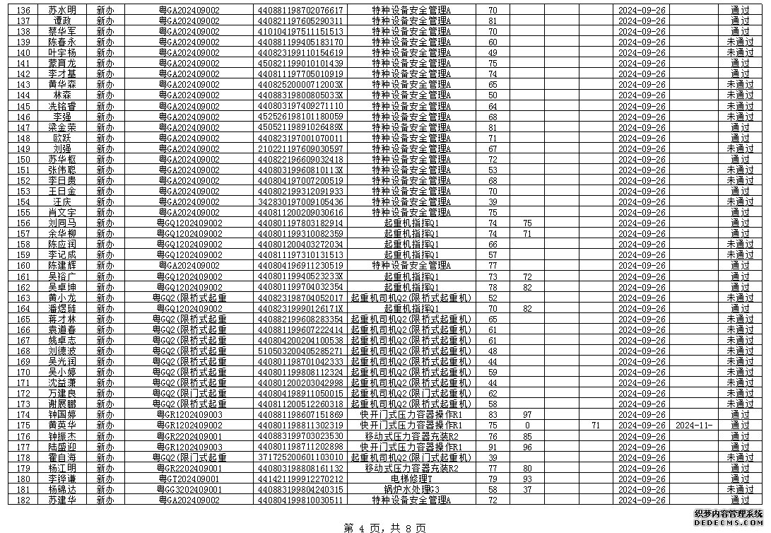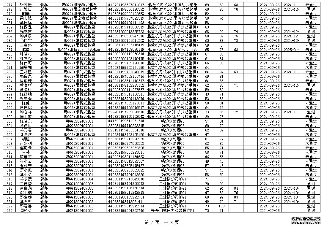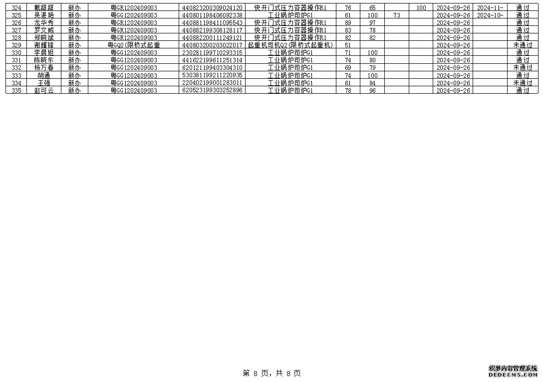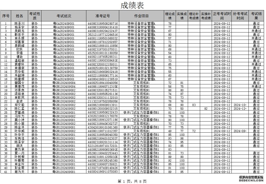 2024年8月特種設(shè)備作業(yè)人員考試成績