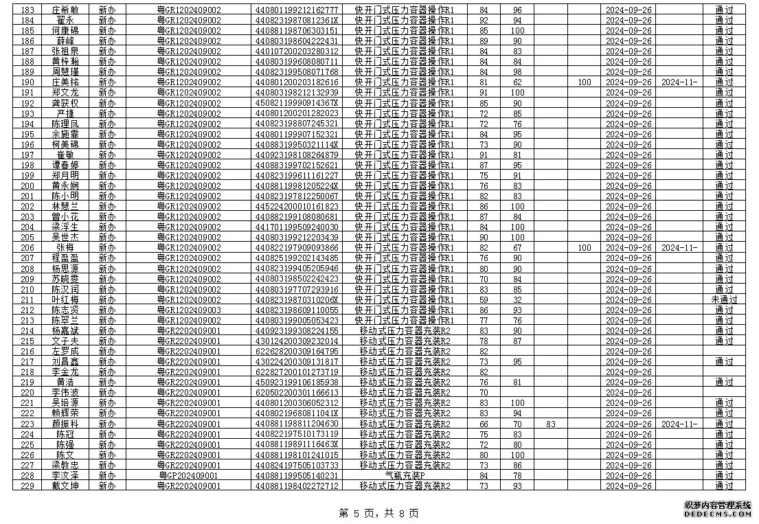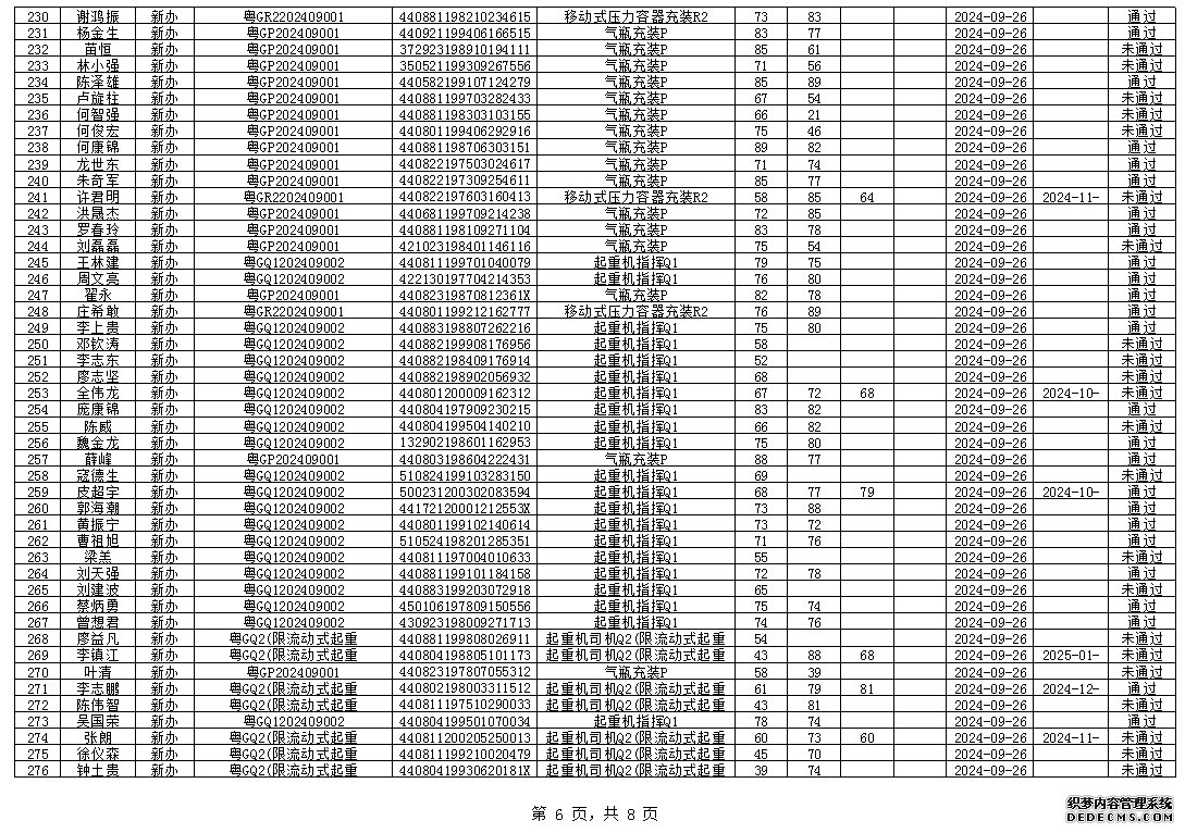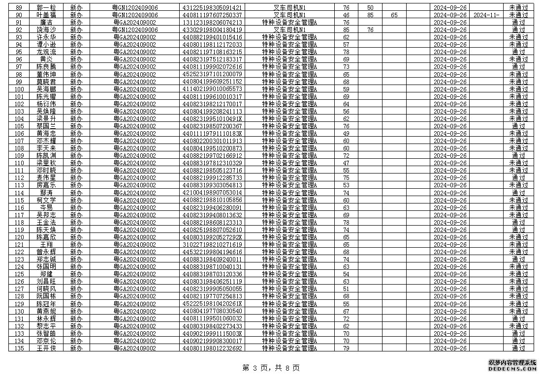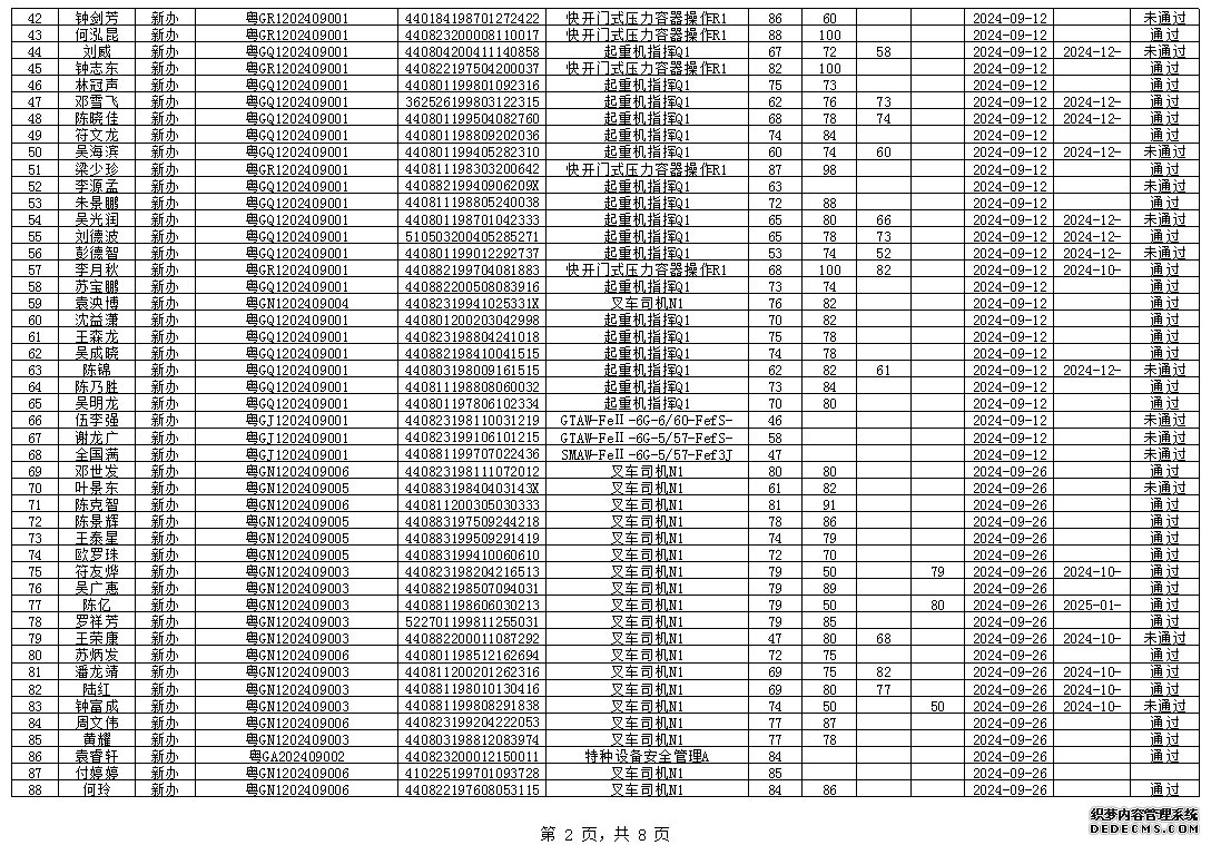 2024年8月特種設(shè)備作業(yè)人員考試成績