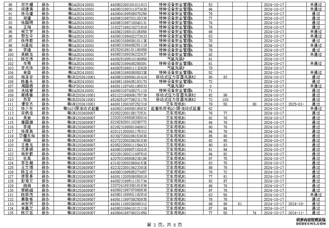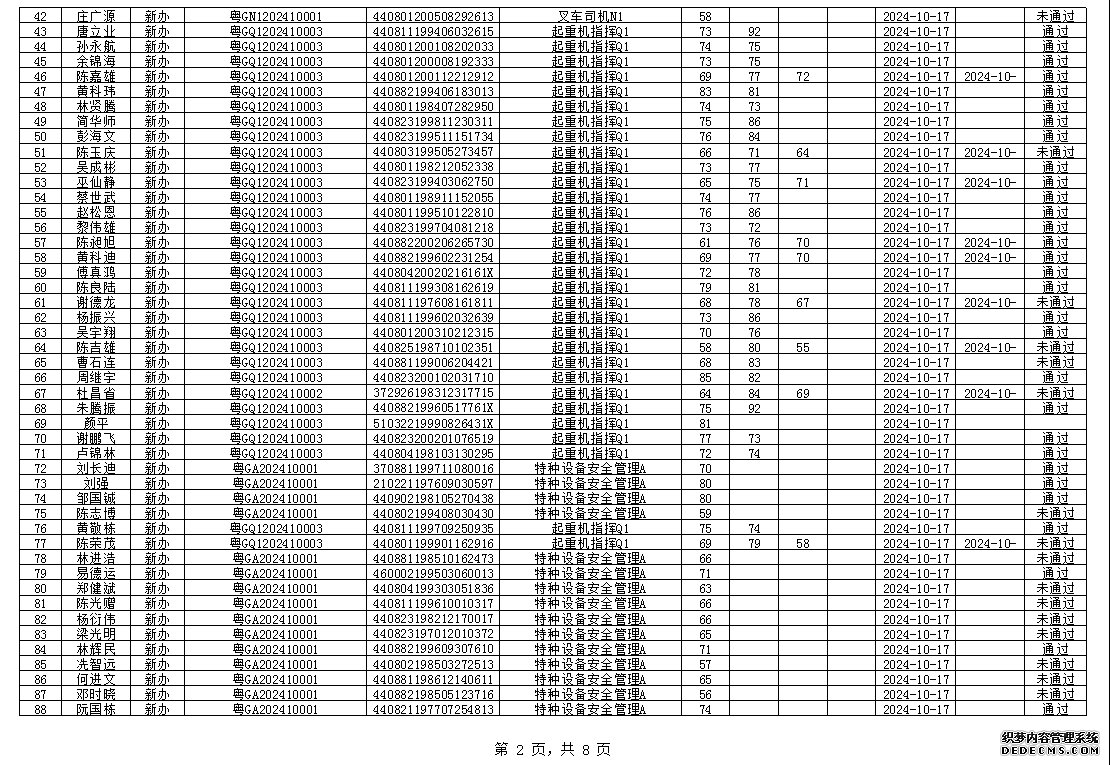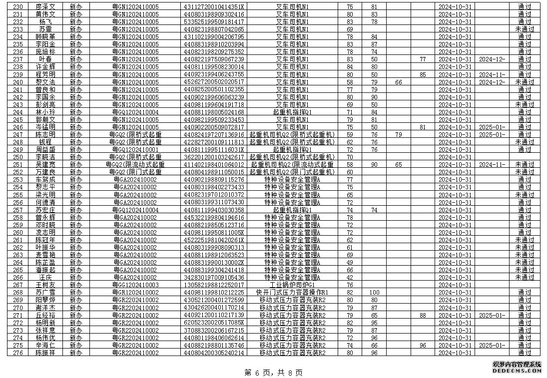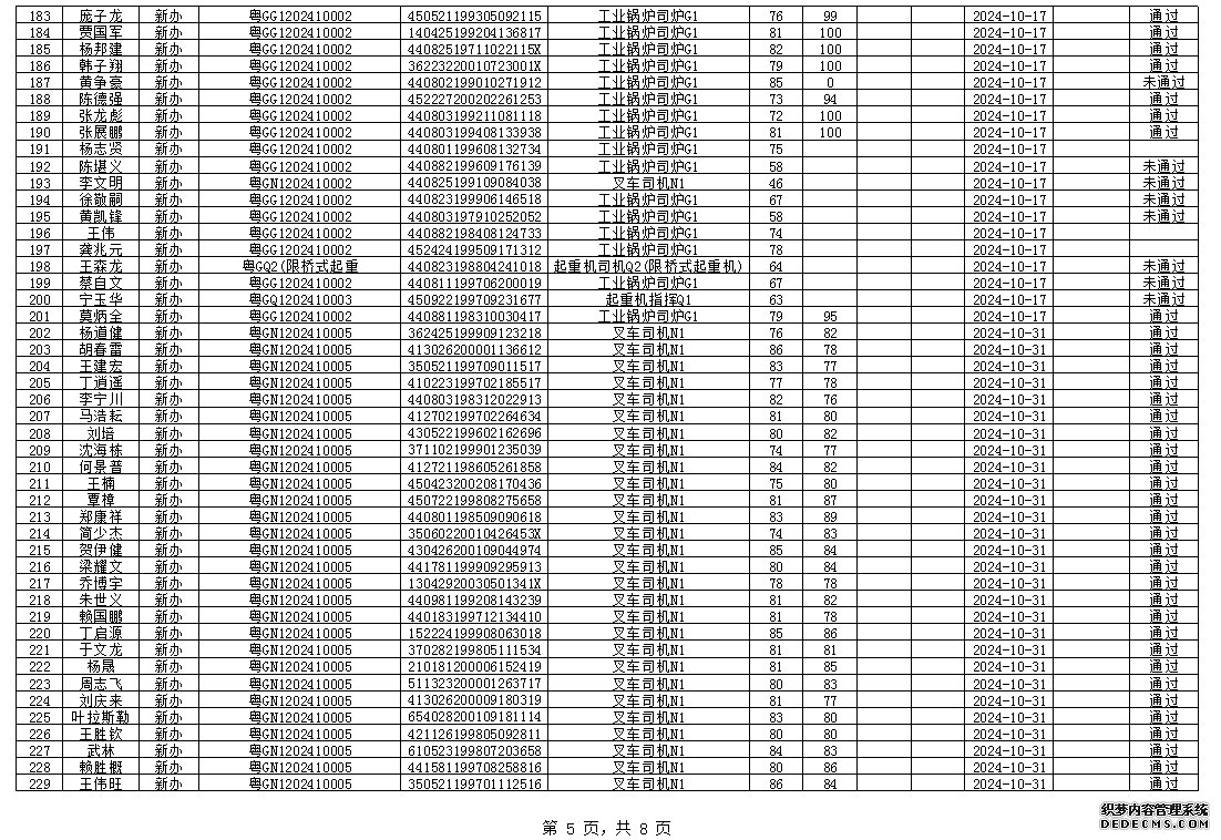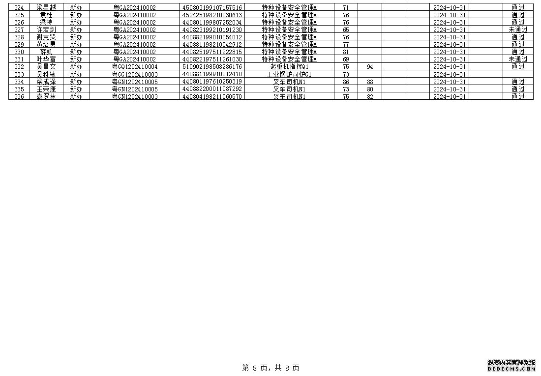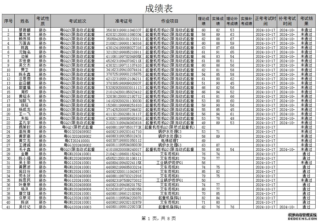 2024年10月特種設(shè)備作業(yè)人員考試成績