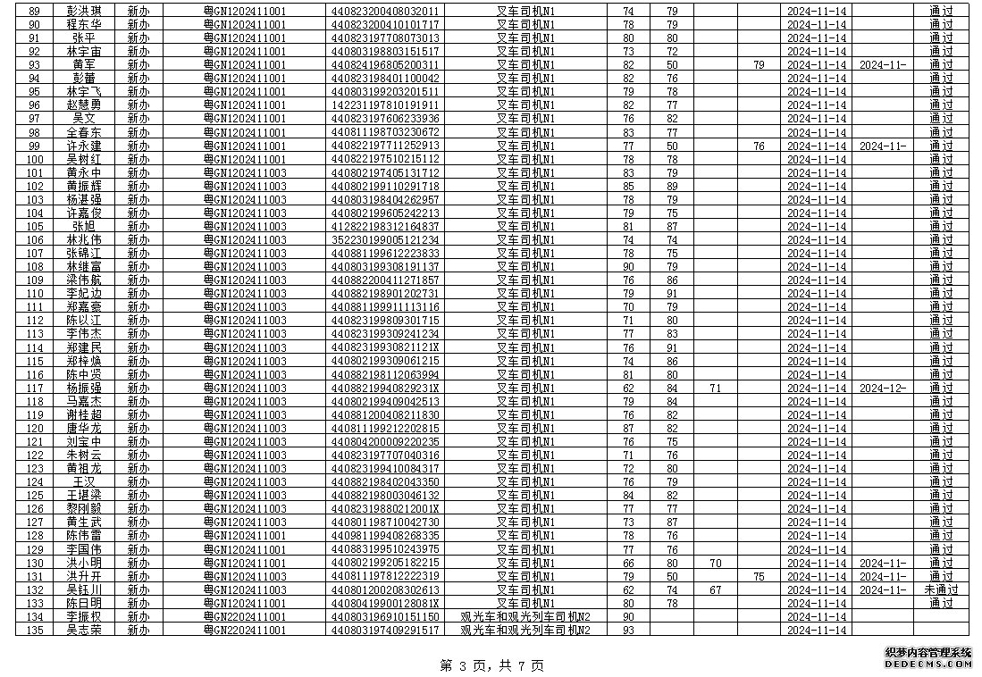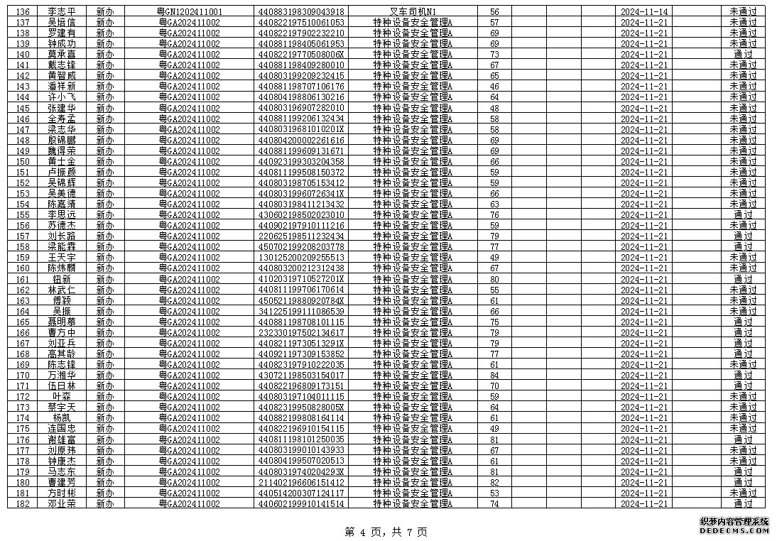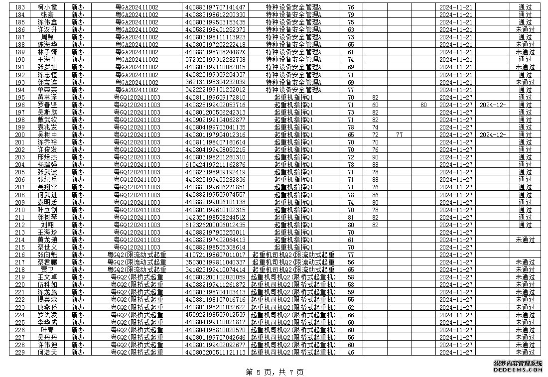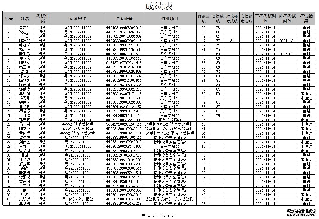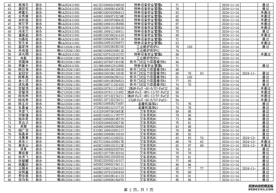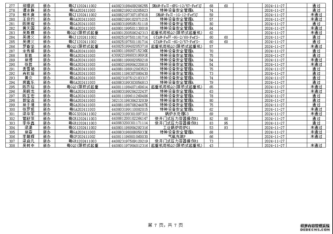 2024年11月特種設(shè)備作業(yè)人員考試成績(jī)