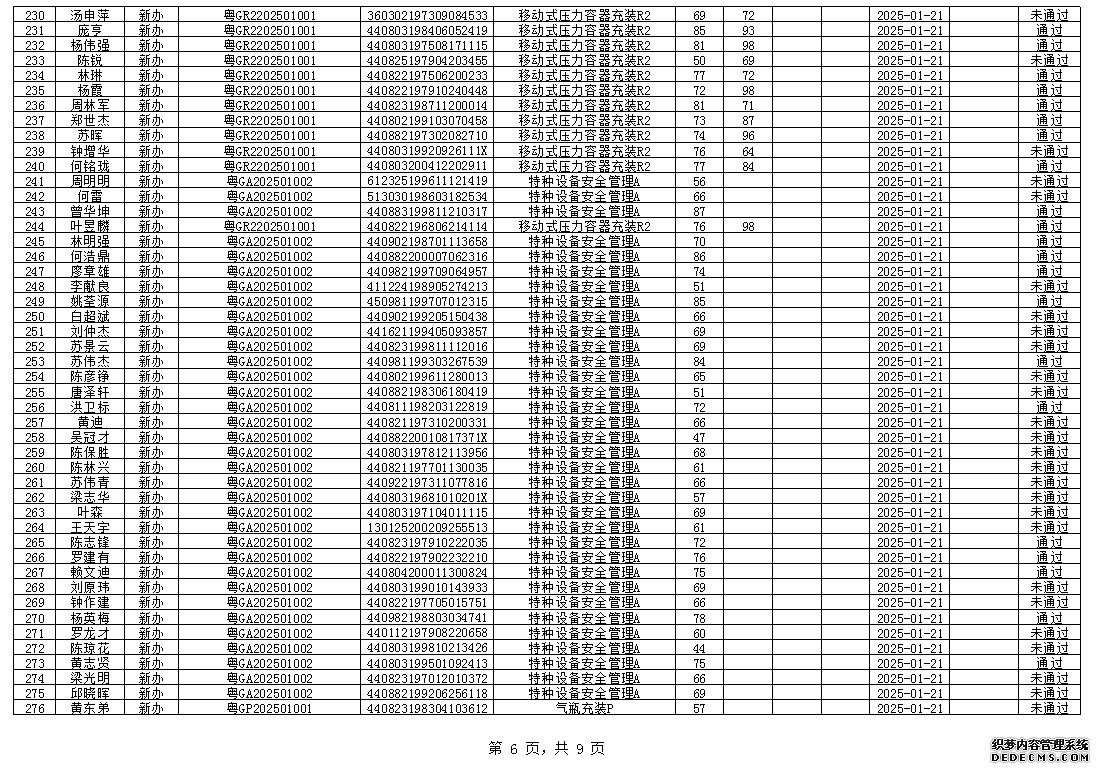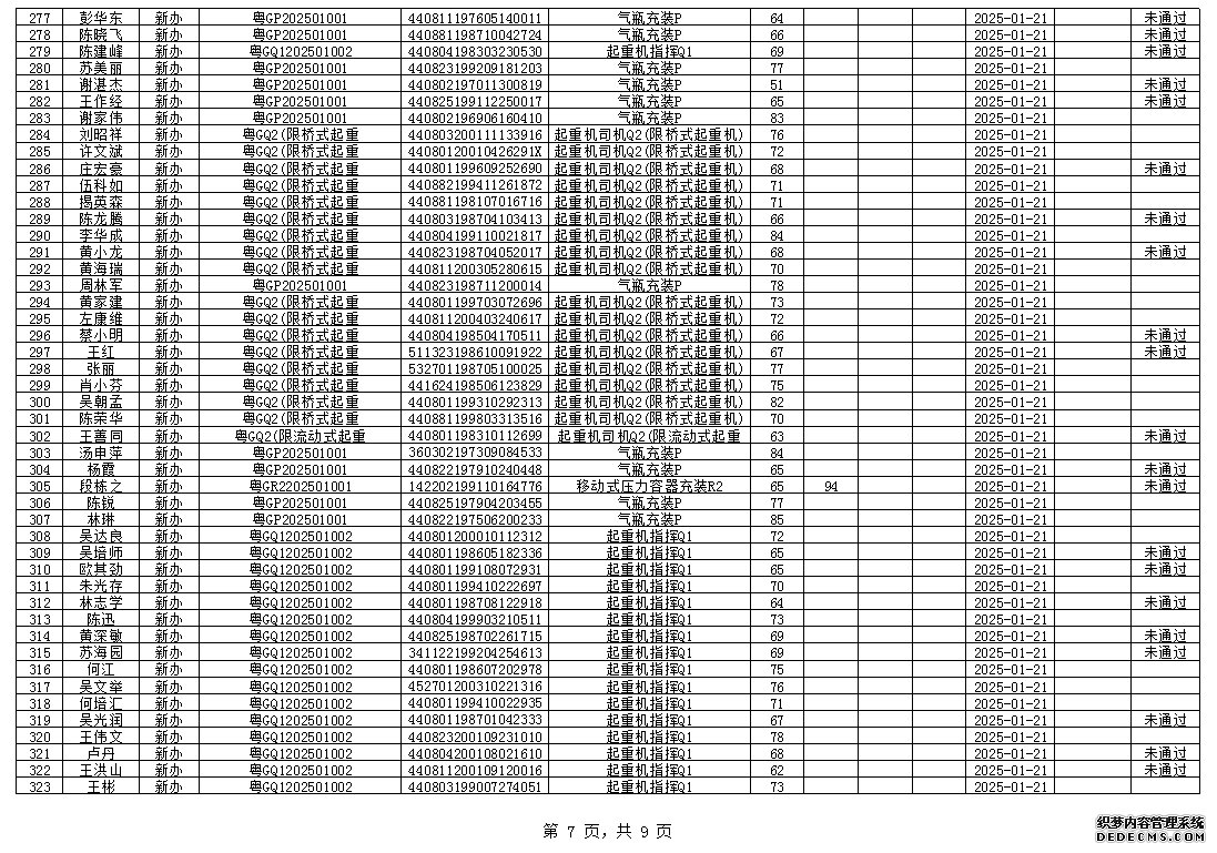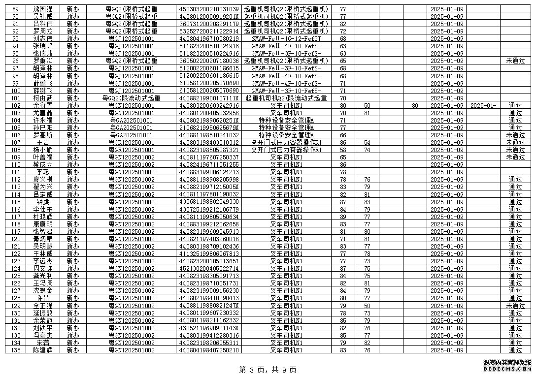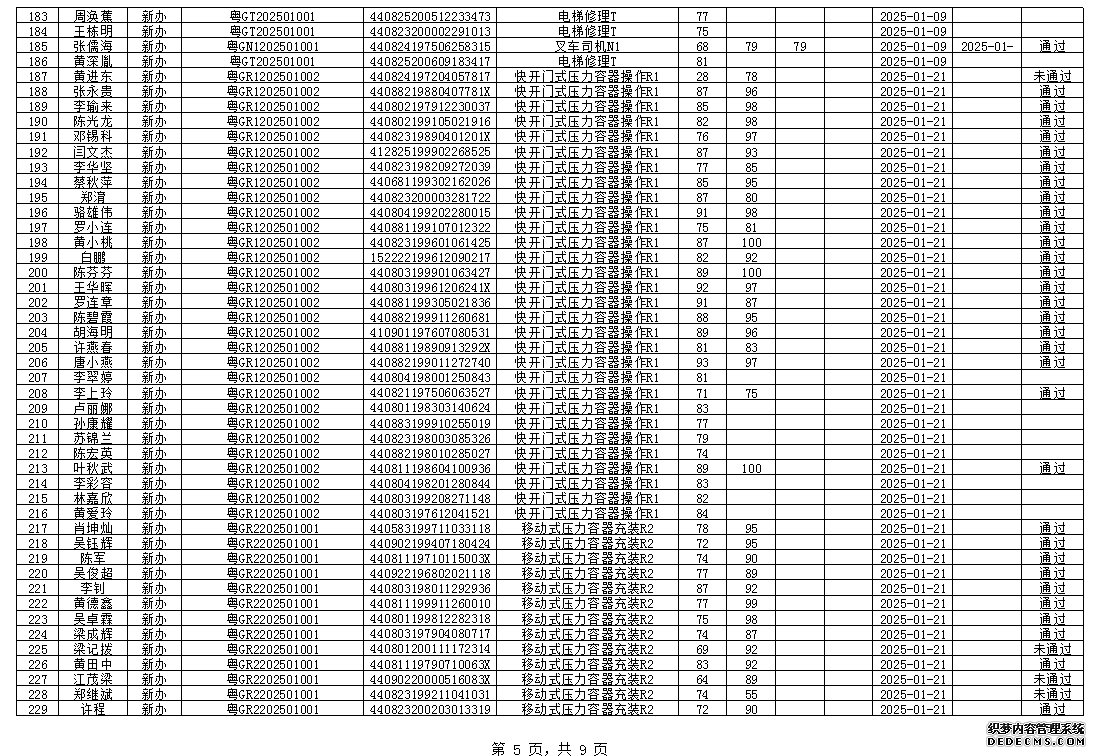 2025年1月特種設(shè)備作業(yè)人員考試成績