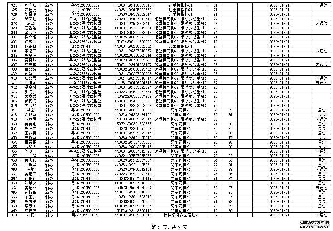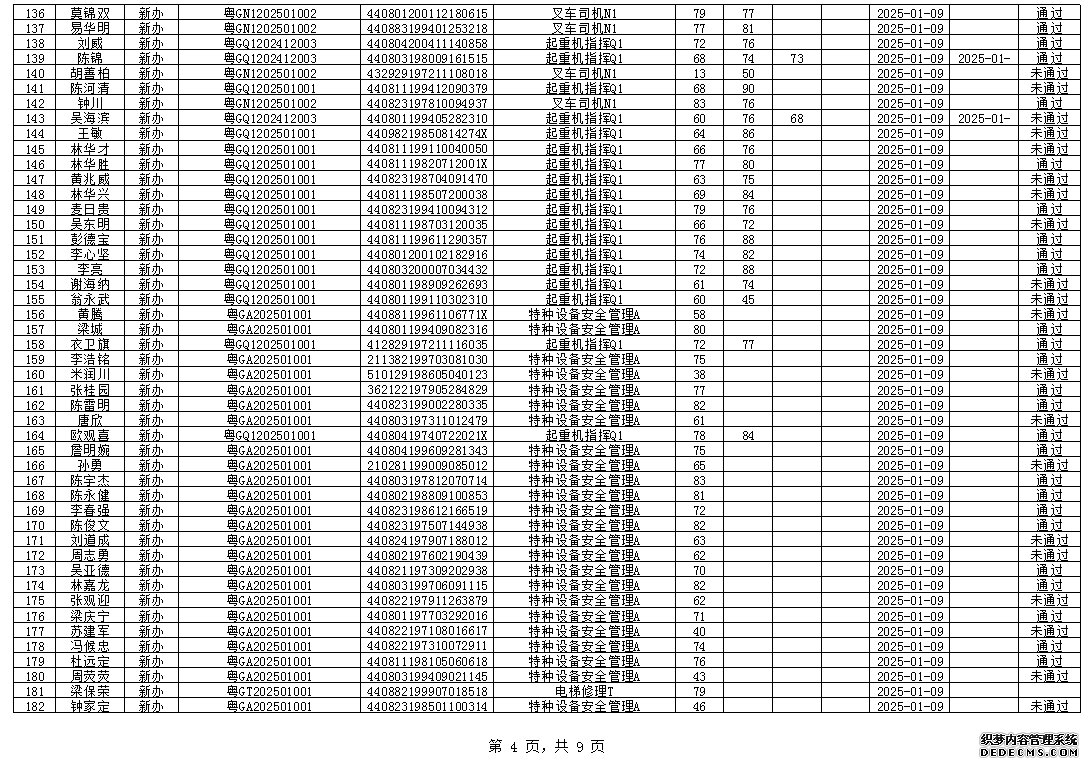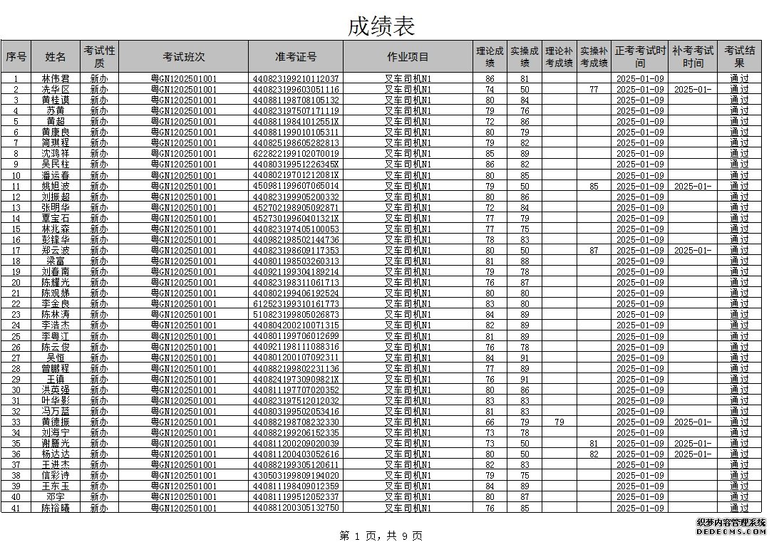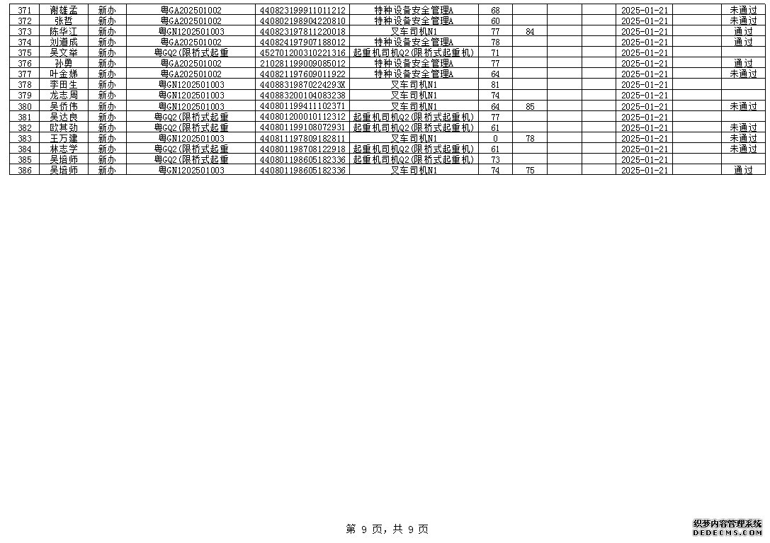2025年1月特種設(shè)備作業(yè)人員考試成績