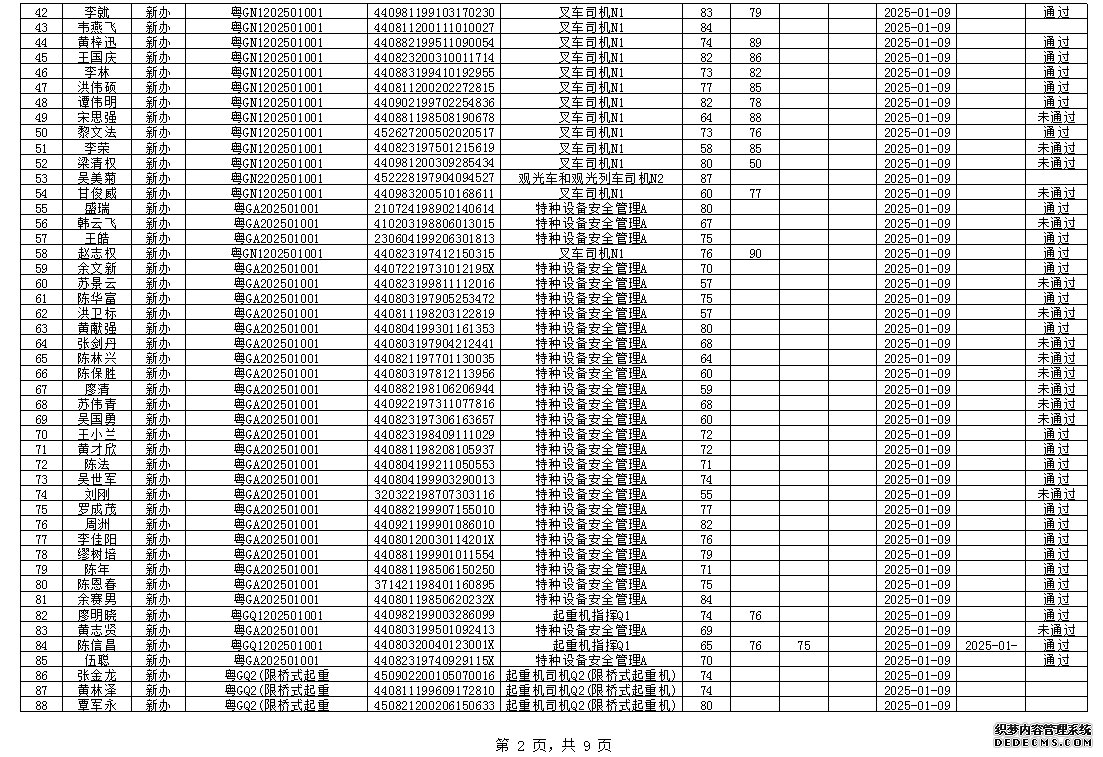 2025年8月特種設(shè)備作業(yè)人員考試成績